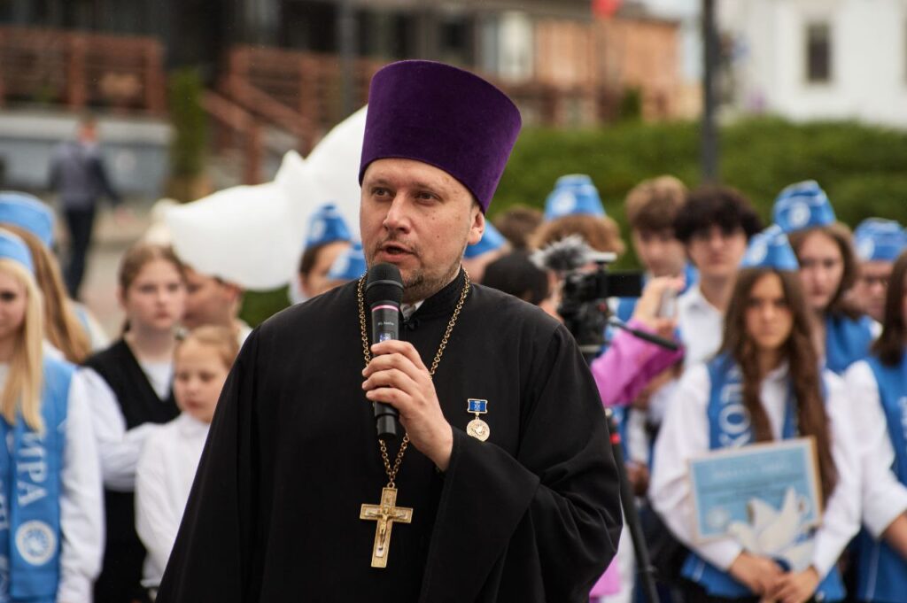 20 сентября 2025 года, в преддверииМеждународного Дня Мира, председатель Правления Христианского образовательного центра имени святых Мефодия и Кирилла священник Святослав Рогальский принял участие во II-ойобщегородской акции «Линейка Мира», которая состоялась на Соборной площади у Минского Свято-Духова кафедрального собора.