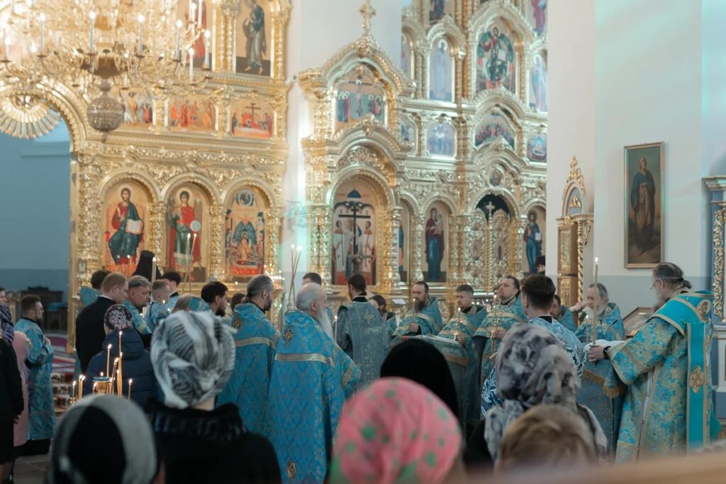 Завершилась поездка посещением торжественного богослужения Похвалы Пресвятой Богородицы с чтением акафиста в Успенском соборе монастыря.