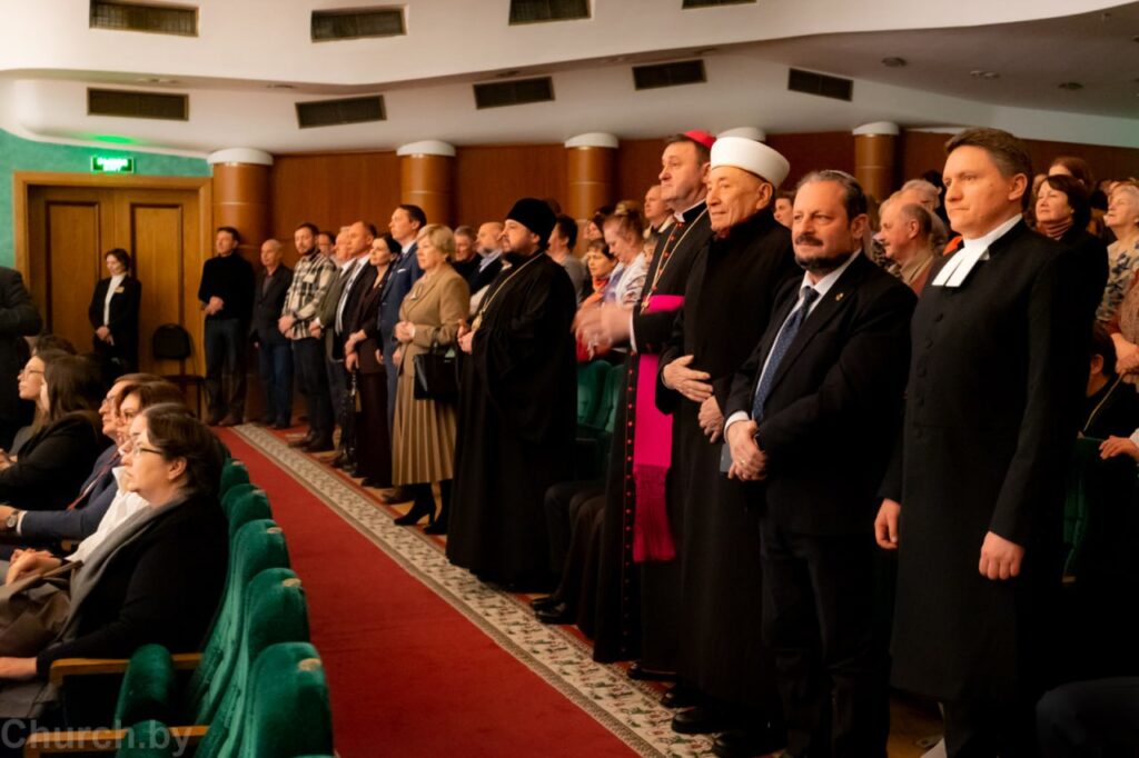 В торжественном собрании приняли участие Уполномоченный по делам религий и национальностей Александр Румак, главы конфессий, представители органов государственного управления Республики Беларусь, дипломатического корпуса, ректоры вузов и руководители общественных объединений и учреждений образования города Минска.