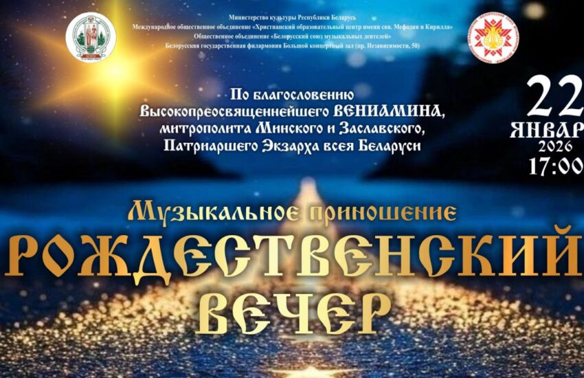 Рождественский вечер возглавит Его Высокопреосвященство Митрополит Минский и Заславский Вениамин, Патриарший Экзарх всея Беларуси. В торжественном собрании примут участие главы конфессий, представители органов государственного управления РеспубликиБеларусь, дипломатического корпуса,